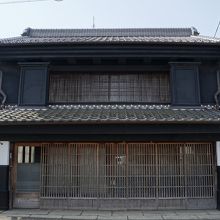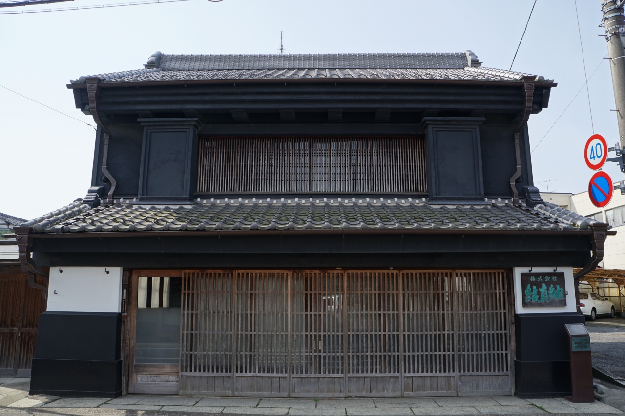 結真紬見世蔵は、黒漆喰が歴史を感じる上に、二階の細い格子と一階の格子戸がとても美しいです。呉服店の店舗兼住宅で、明治後期の建物。国の登録有形文化財にもなっています。内部の構造についても説明が詳しくありました。