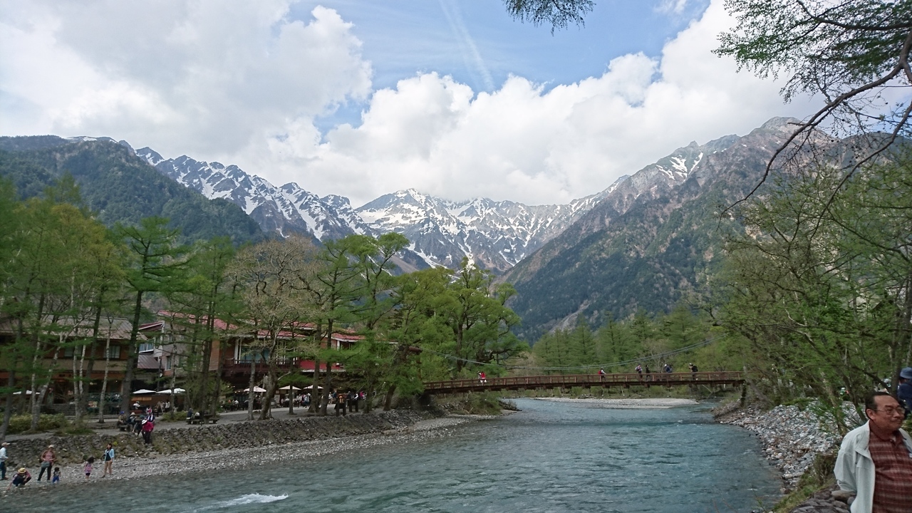 かっぱ橋からは穂高連峰はでっかく見えて、河はきれいな流れを見せます。