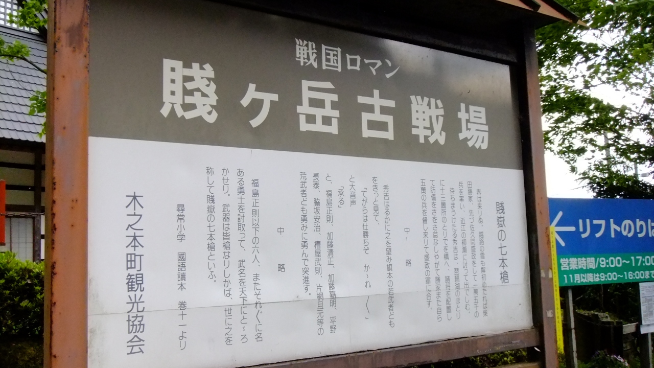 歴史的に有名な「賤ヶ岳古戦場」があるということで訪問しました。山のふもとに無料の駐車場があったので、そこに車を止めて、リフト(有料)で山頂まで行きました。リフトを降りてからちょっと上りますが、景色はいいです。銅像もありました。