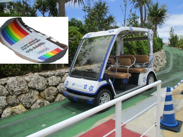 でも、無料でレストラン(イタリアン)と土産物コーナー(広くて、試食が一杯できる)に入れます。チケット売り場で、「カートに乗らないで、上に行きたいです」と言えば、腕につけるレインボー色の紙テープ(なかなか外れません)を渡してもらえます。自動運転カートの横の道を数分自力で登るだけ。坂もそんなにきつくなく、気持ち良いです。