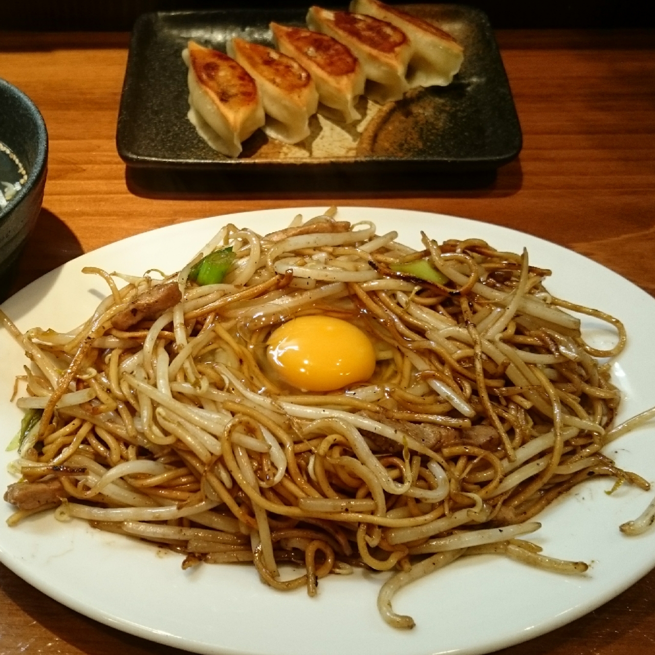 シャキシャキともちもちの不思議な食感の焼きそばです。店員さんいわく、生たまごもしくは半熟卵をのせるのがおすすめとのことで、よりおすすめな生たまごを乗せてたべました。たれとからんで美味しかったです。 青のりやガーリックチップスなどでアレンジも可能です。