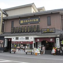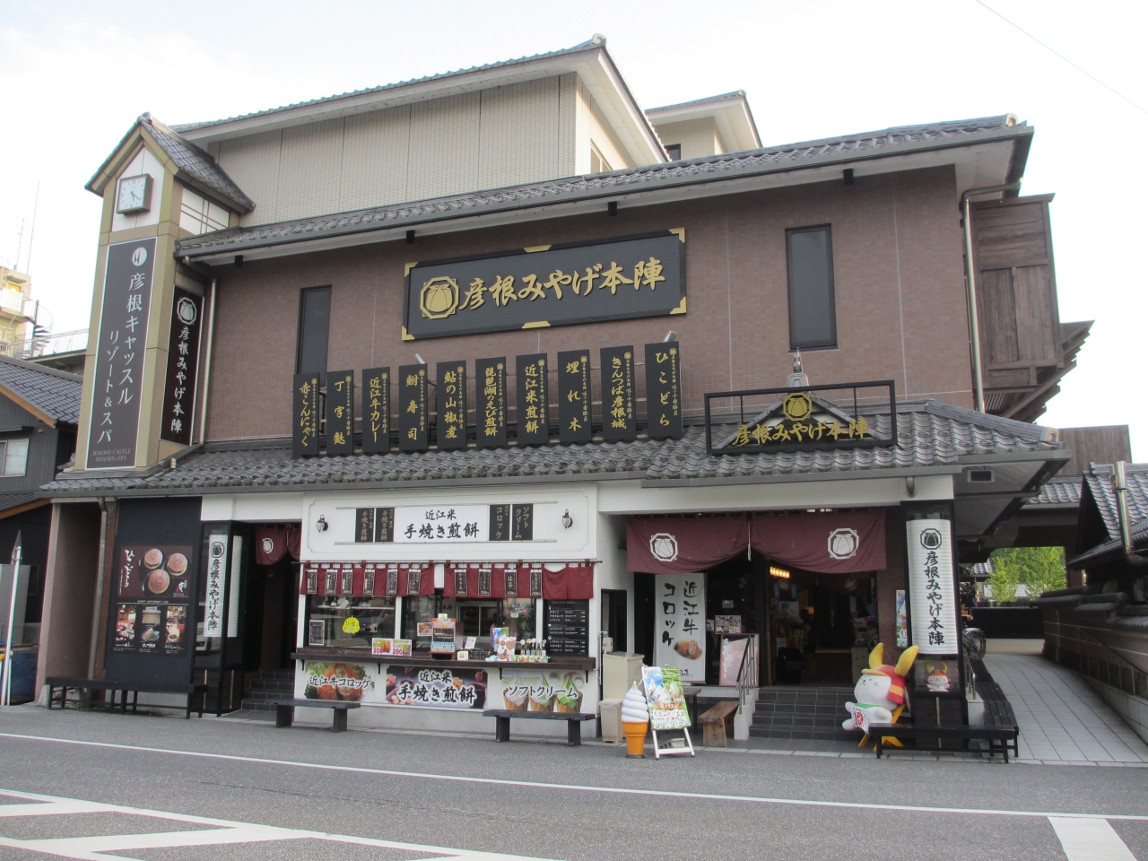 彦根駅から徒歩15分です。彦根城いろは松そばの交差点の角にあります。彦根キャッスルリゾート&スパの売店ですが、ホテル利用客ばかりでなく一般観光客が入りやすい道路沿いの店舗です。彦根・近江の銘菓、民芸品、地酒などのほかに店頭でソフトクリームやドリンク、近江牛コロッケを販売しています。土産物を下見して、彦根城を観光した後に寄りました。