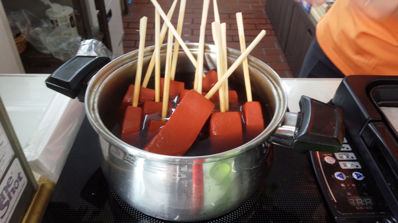 15分間隔で八幡山へ上るロープウェイで、待ち時間に乗場売店で変わったものを見つけたよ。それは赤こんにゃくといって、串に刺した赤色のこんにゃく!「これ何?何で赤いの?」「鉄分で赤いんです!派出好みだったから!」???何かよくわかんないから食べてみました。出汁が利いた普通のこんにゃくでした…