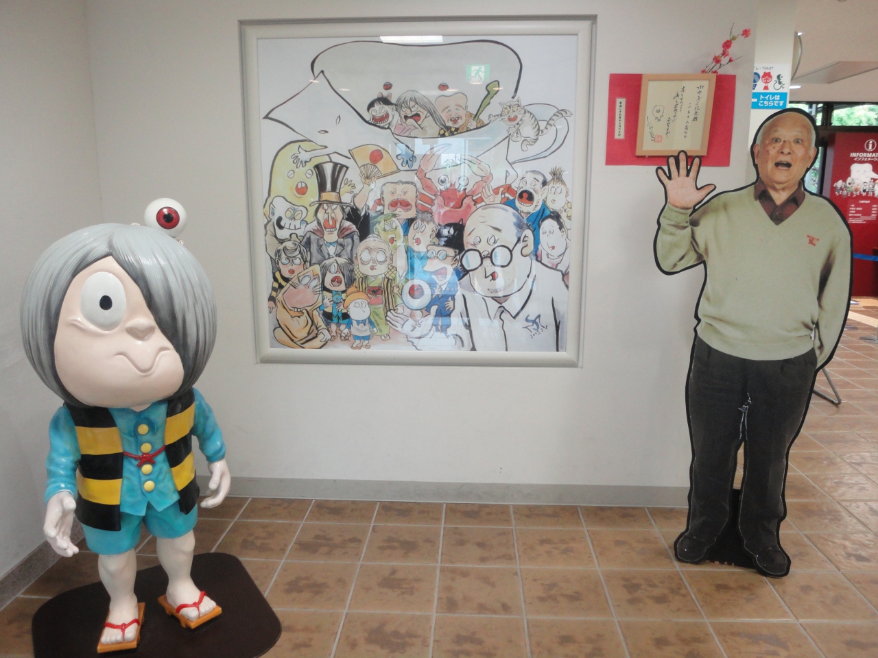 ゲゲゲの鬼太郎記念館ではなくて、水木しげる記念館ですから、先生の人生を赤ちゃんの時からていねいに振り返って見ることができます。先生の書かれた漫画や妖怪がたくさん展示されていて、先生ご自身が出演されているビデオも放映されています。