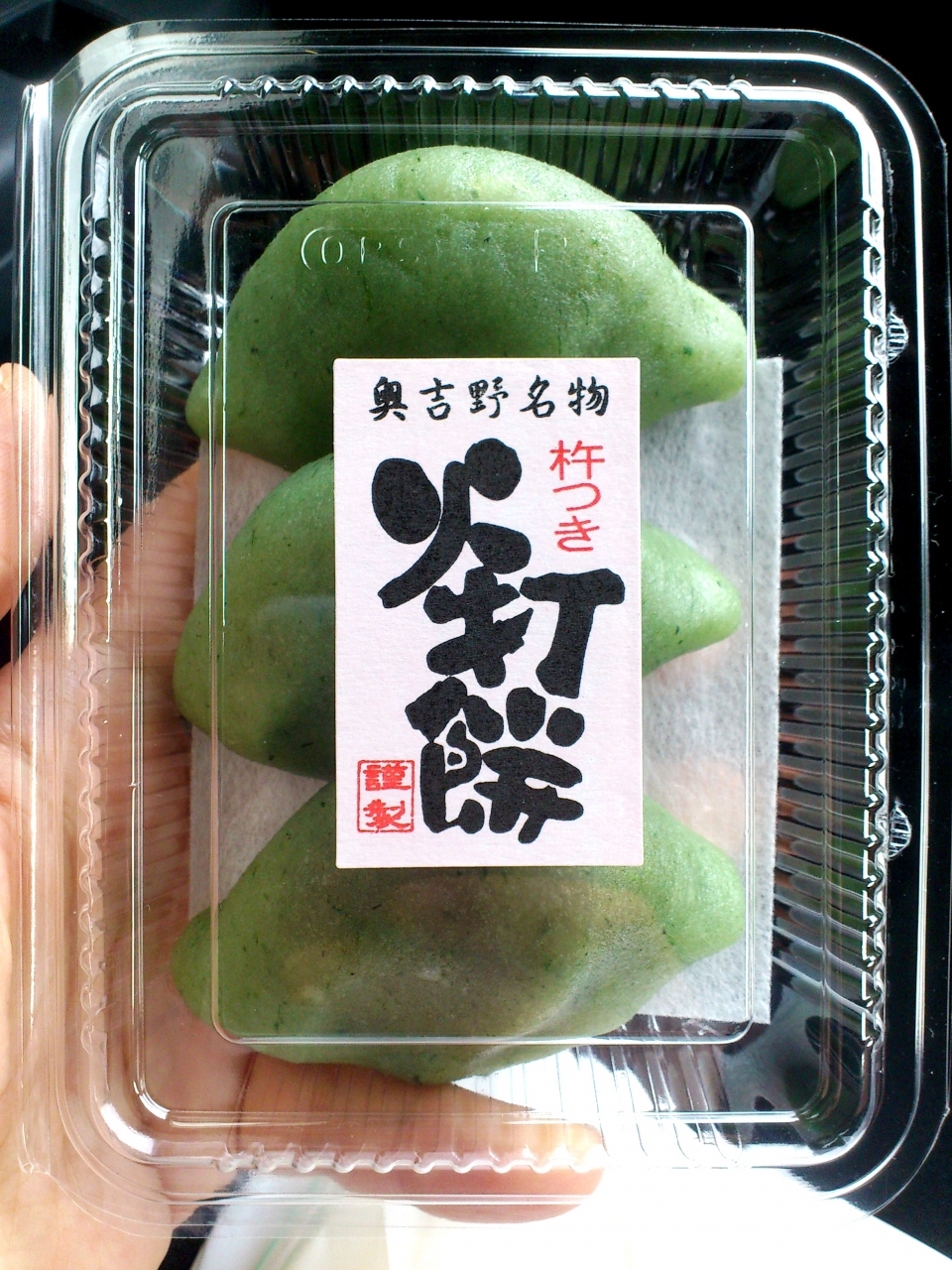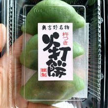 運良く、名物「火打餅」があったので購入しさっそく食べてみると、ほどよい甘さのこしあんに、つるりとした表面のよもぎ餅はもちっとして柔らかくおいしかったです。