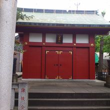 神田明神の境内にはたくさんの末社がありますが、そのうちの一つです。本殿の左側に末社が幾つか並んでいますが、その中にあります。建物の前に大きな天水桶が置かれています。江戸の反物などの流通を一手に扱う問屋仲間が奉納したものだそうです。
