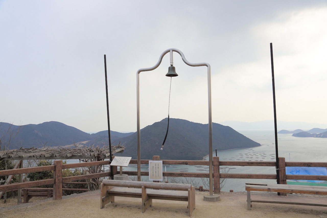 頂上には展望スペースが整備されていて、幸せの鐘が設置されている他、ベンチが整備されています。こちらから見えるのは良くある瀬戸内の景色だとは思いますが、折角日生まで足を延ばしたのなら、登ってみても良いのではないでしょうか。