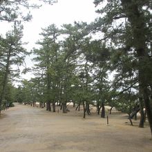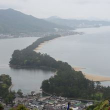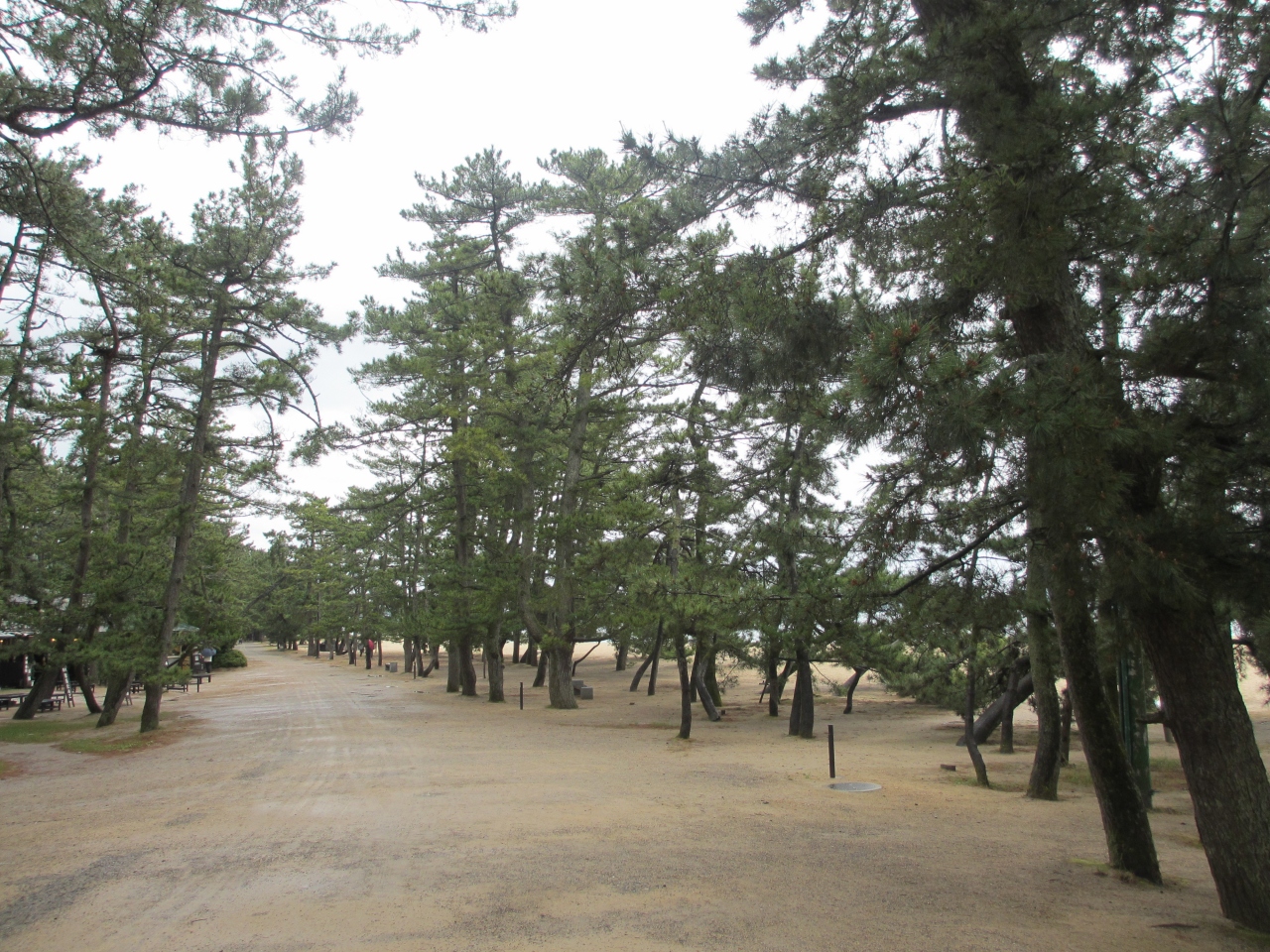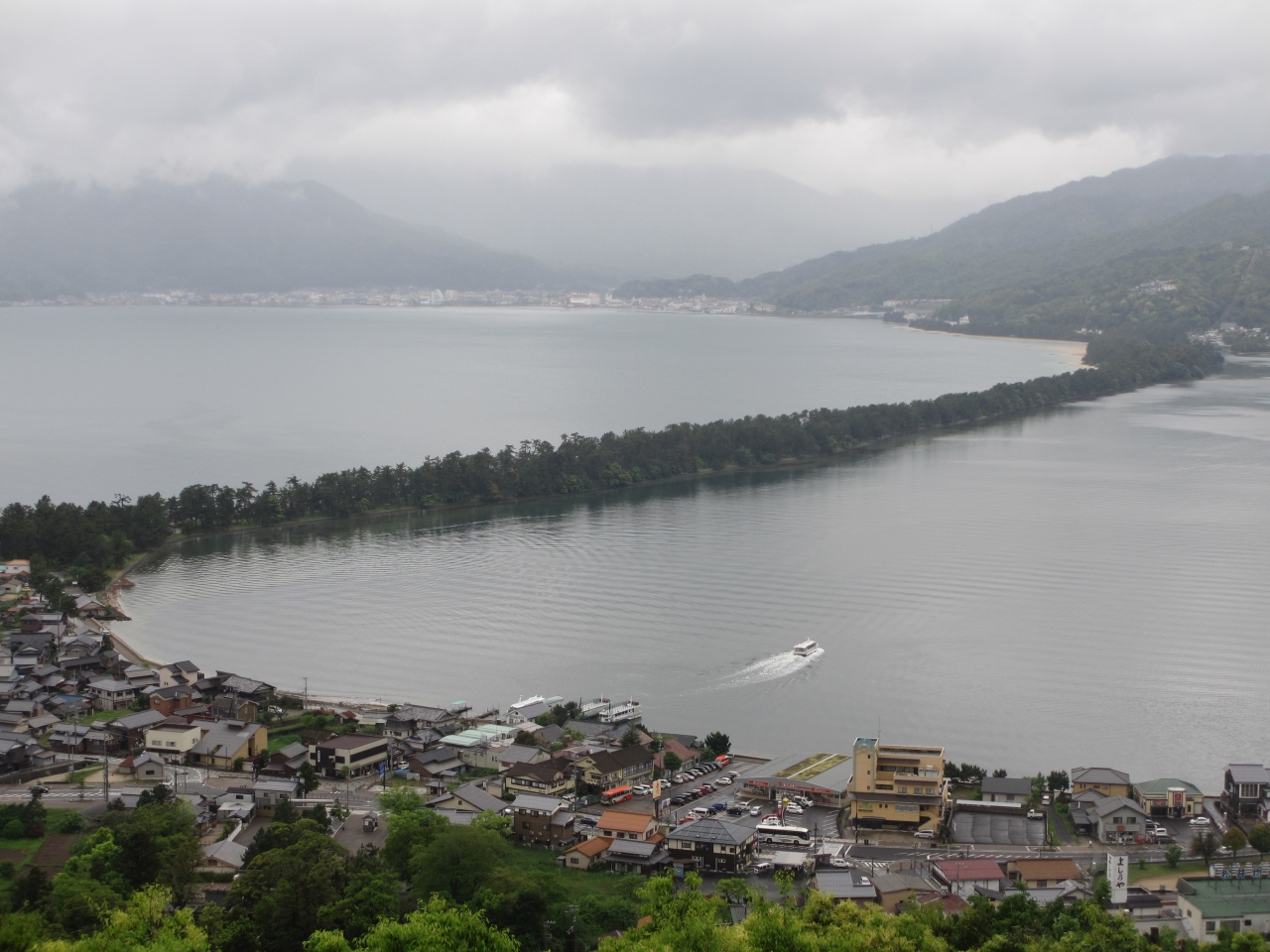 野田川から流れ出る砂と外海から流れてくる砂とがぶつかり合って堆積しできた天橋立です。できた砂地にはその後クロマツが自然発生してきたそうです。しかし松の根は広がって根づいていないため見た目ほど強くなく、毎年何本もの松が倒れてしまうという話です。