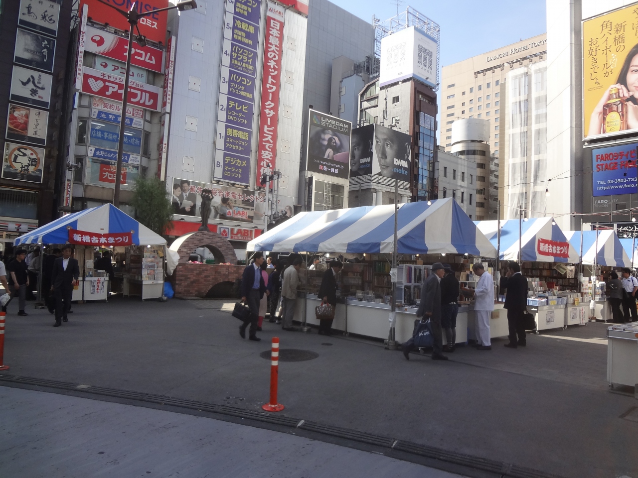 恒例の新橋古本まつりが開催されていました。簡易テントの下、様々なジャンルの本が格安で売っていて、たくさんの人が集まっていました。思わぬ掘り出し物があったりするので、この日ばかりはサラリーマン以外の人たちの姿も見受けられます。