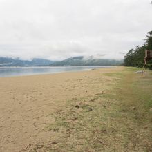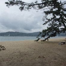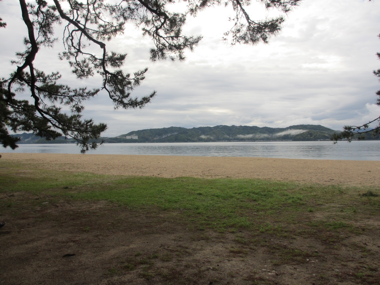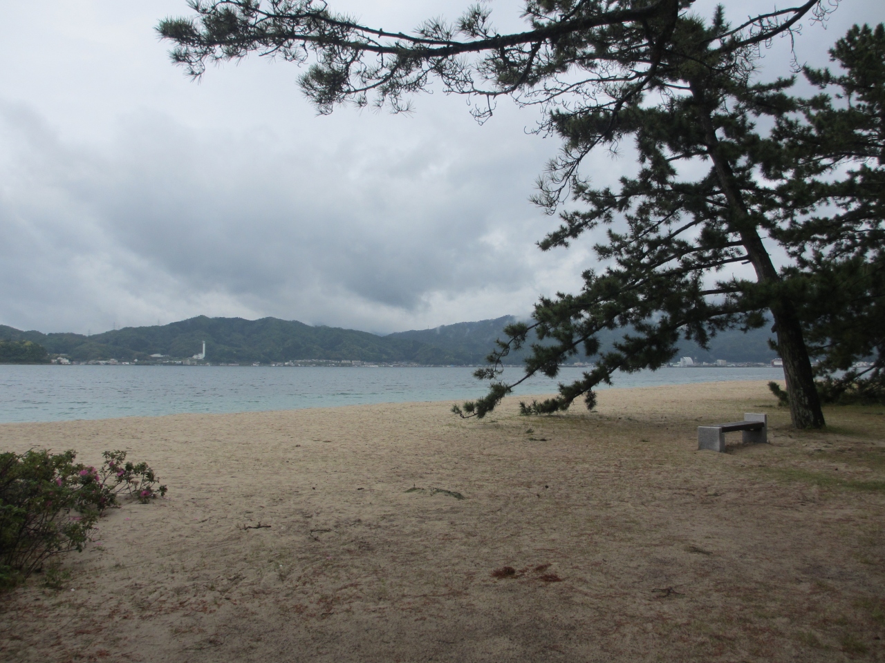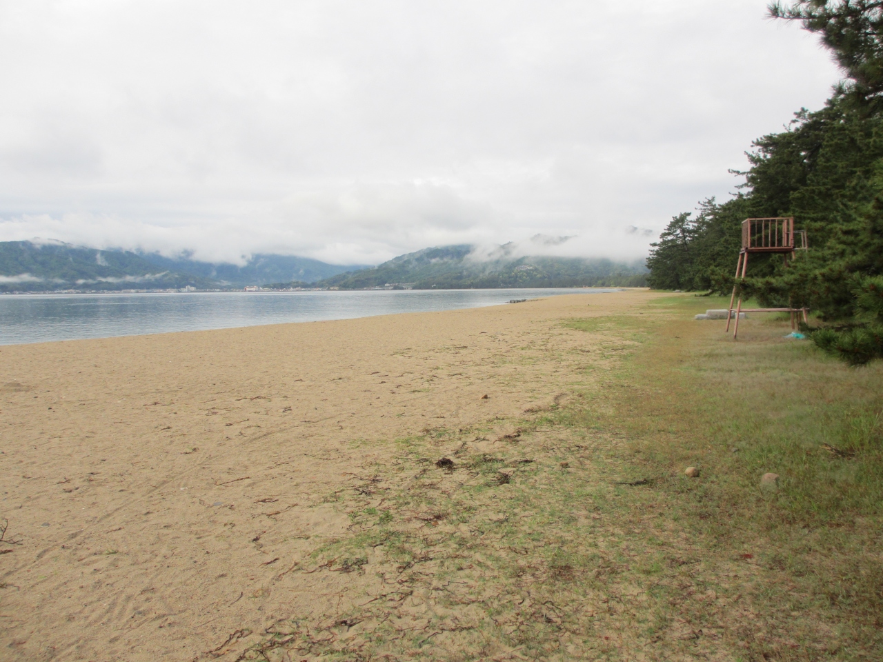 天橋立松並木の外側、宮津湾側に砂浜が広がり海水浴場として利用されています。夏は多くの人でにぎわうようですが、春に訪れたため海水浴場として利用している人はいませんでした。朝の散歩でのんびり砂浜を散策する地元の人や観光客がぱらぱらと見られました。海水浴場は文殊地区と府中地区にそれぞれ1カ所ずつあります。