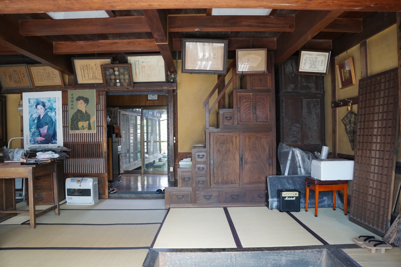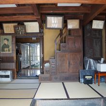 なので、思い切って玄関に入って声を掛けましたが、応答なし。仕方がないので玄関先の写真だけは撮らせてもらいました。階段の脇にタンスがついたりして、銭形平次の世界のような感じです。