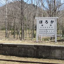 廃止になった鉄道の跡らしく寂しげな風景であったが、妙に駅名版だけが新しい。
