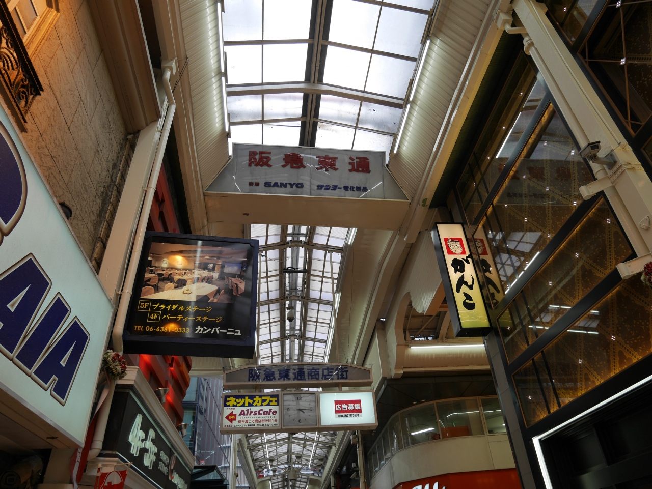 阪急梅田駅から東に延びる大きな商店街です。夜が賑わうようで、飲食店や娯楽施設が目立ちます。道を隔てて幾つもの商店街が続き夜は雰囲気が一変するので女性の一人歩きはお勧めできません。いかにも大阪らしい雰囲気の商店街でした。