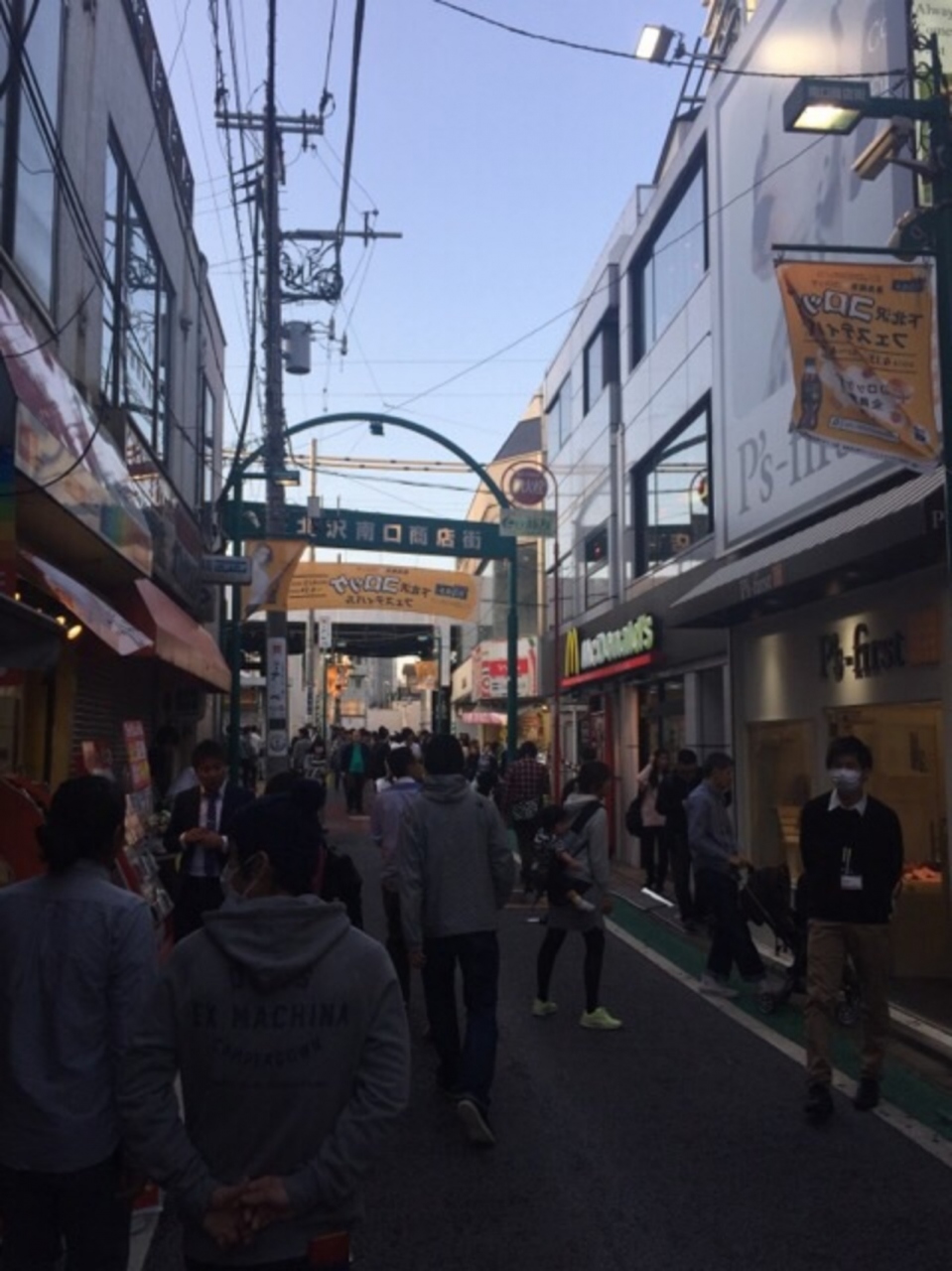 若者の町である下北沢の代表的な商店街で、正に若者であふれていて、活気があります。