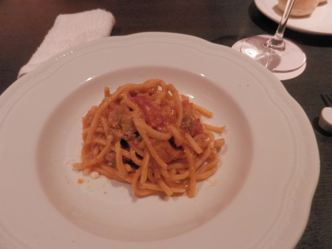 友人に連れて行ってもらったので迷わず行けましたが、2Fにあがる階段をみつけられないとたどりつけないイタリアンのお店です。入ってみると隠れ家的で、ワイワイというよりもゆっくり食事を楽しむような感じ。コースを頼みましたがカルパッチョや手打ちのパスタなど、どれもおいしかったです。