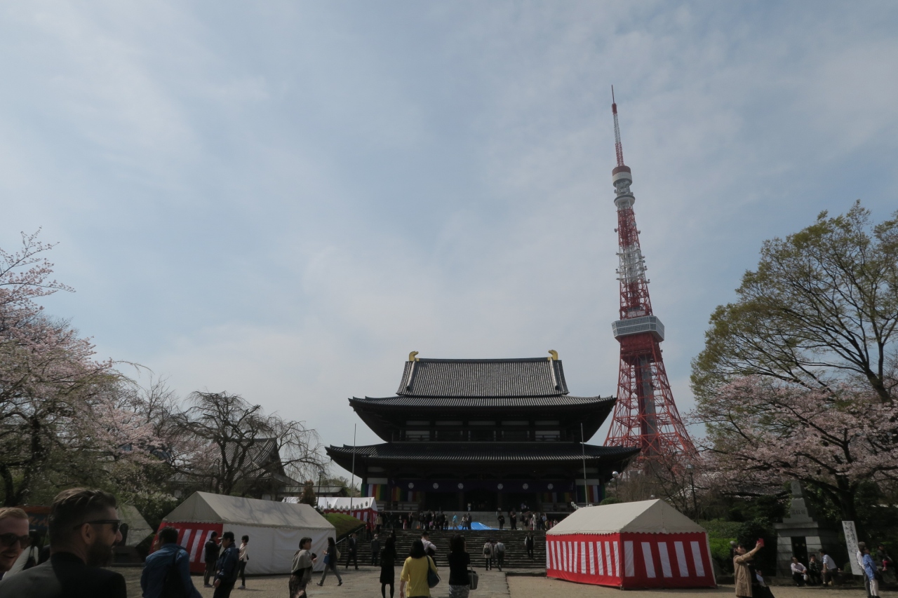 思っていたより混んでいなかった。桜と寺院の屋根、そして東京タワー。ほんとにいいですね。これぞ東京といった感じです。お天気も良く写真には最高でした。ずらっと並んだに多くの海外の観光客がカメラを向けていた。