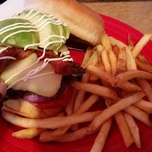 ビール(ハーフ&ハーフ)とボリュームたっぷりのバーガーをオーダー。