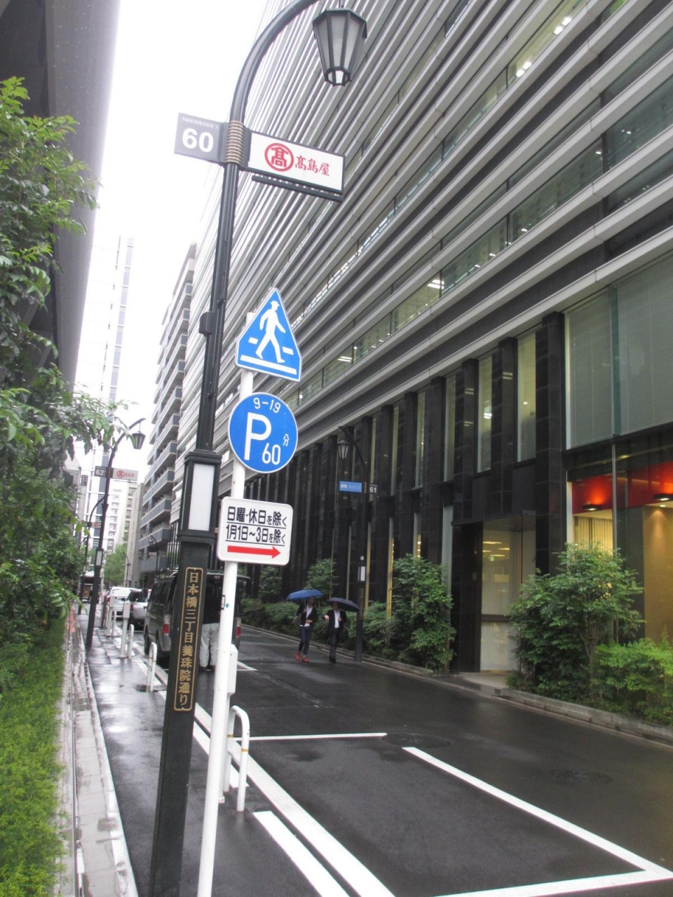 八重洲一丁目の外堀通りから日本橋三丁目の昭和通り手前までの東西を結ぶ通りで、八重洲通りと並行して走る八重洲通りから北に2本目の道です。付近を散策中に通りました。店も少なく人通りも多くはないという印象でした。