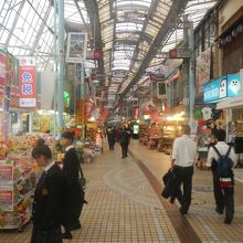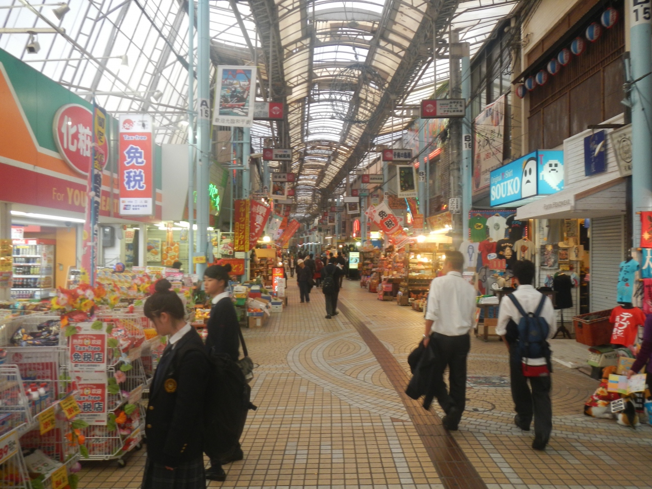 第一牧志公設市場に近いこのあたりはアーケードがあり、観光客向けの土産物を売っている店が並んでいる。特に買うつもりはないが、商店を覗き、試食できるものがあれば試食して歩く。疲れたら腰を下ろせるところを探して一休みした。