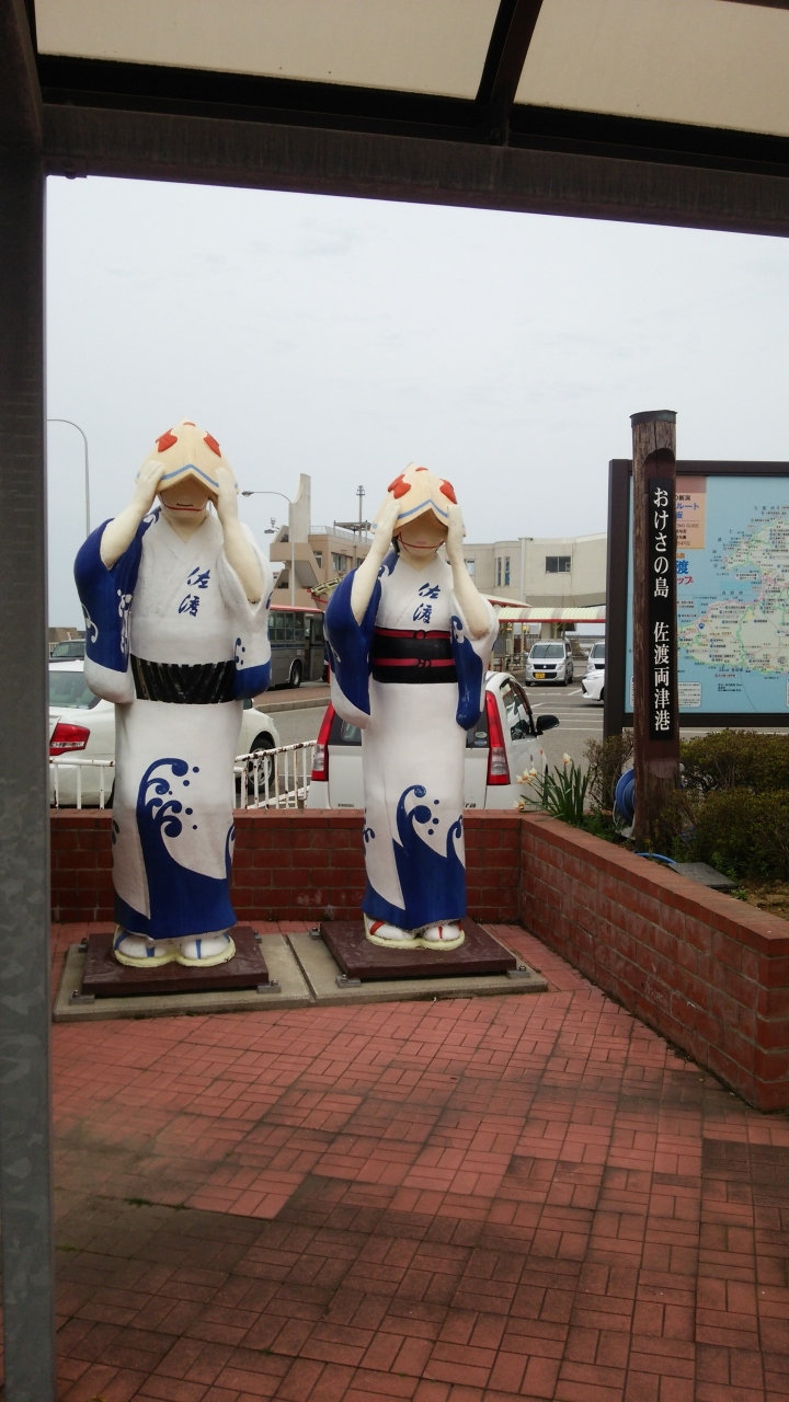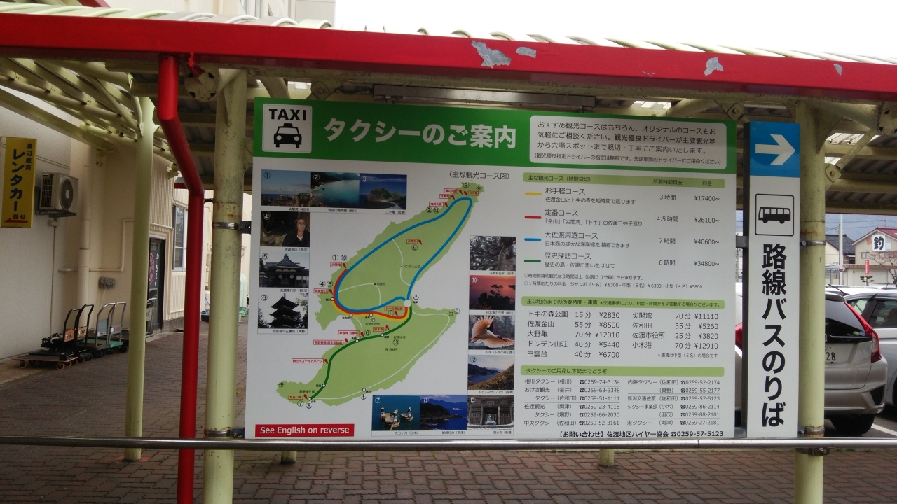 新潟港から佐渡汽船ジェットフォイルで1時間強、佐渡島の玄関口である両津港へ到着しました。改札を抜けると「シータウン商店街」というお土産物屋さんがたくさん並ぶエリアです。ターミナル内には観光案内所やレンタカー屋さんなどがあります。