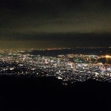 大阪平野、神戸方面、とにかく広い範囲での夜景がはっきりと見え、感動です。