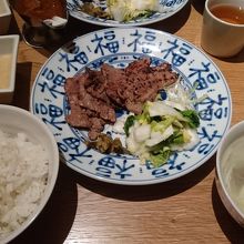 牛タンのお皿にとろろ、麦飯、テールスープが付いてきます。