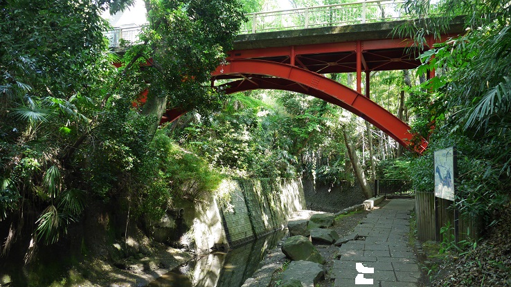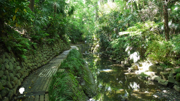 東急大井町線等々力駅から3分くらいのところにある遊歩道入り口から渓谷沿いを散策。駅前は普通の商業地域だが遊歩道に進むとそこは別世界。森に覆われた世界は太陽の日差しをやわらげ涼しい。5月の新緑の時期、緑がまぶしさを実感。都心の東京離れした景色を気軽に楽しみにはもってこいの場所だと思う。