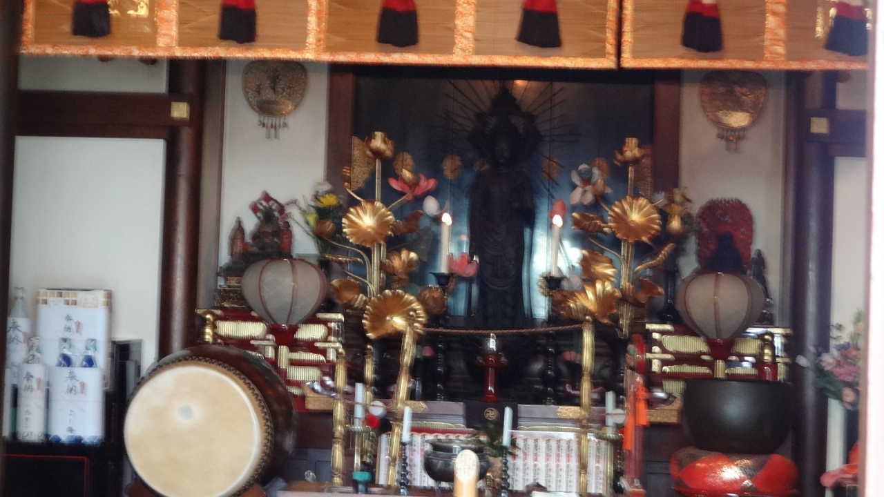 メトロ「人形町」駅のすぐそばにあります。本堂は階段を上がった2階にあり、本堂の奥には「鉄造菩薩頭」と呼ばれる観音菩薩の巨大な頭部がおさめられていると聞きました。本堂をのぞきこみ「鉄造菩薩頭」を探すのですが、小さな観音さまが立っているのみです。実はいつも見れるものでなく、ご縁日(本尊開扉)である毎月17日(もしくは11日も)に見ることができるのだそうです。この御本尊は、以前鎌倉を散策した際、通りすがった、鶴が岡八幡宮近くにある「鉄ノ井」から発見されたそうです。今回、図らずも、ここでご対面できるところでしたが、それが叶わなくてとても残念でした。
