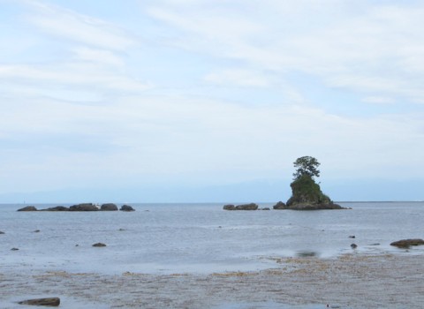 浜から眺める岩礁、そして富山湾越しに3,000m級の立山連峰眺められるということでしたが
