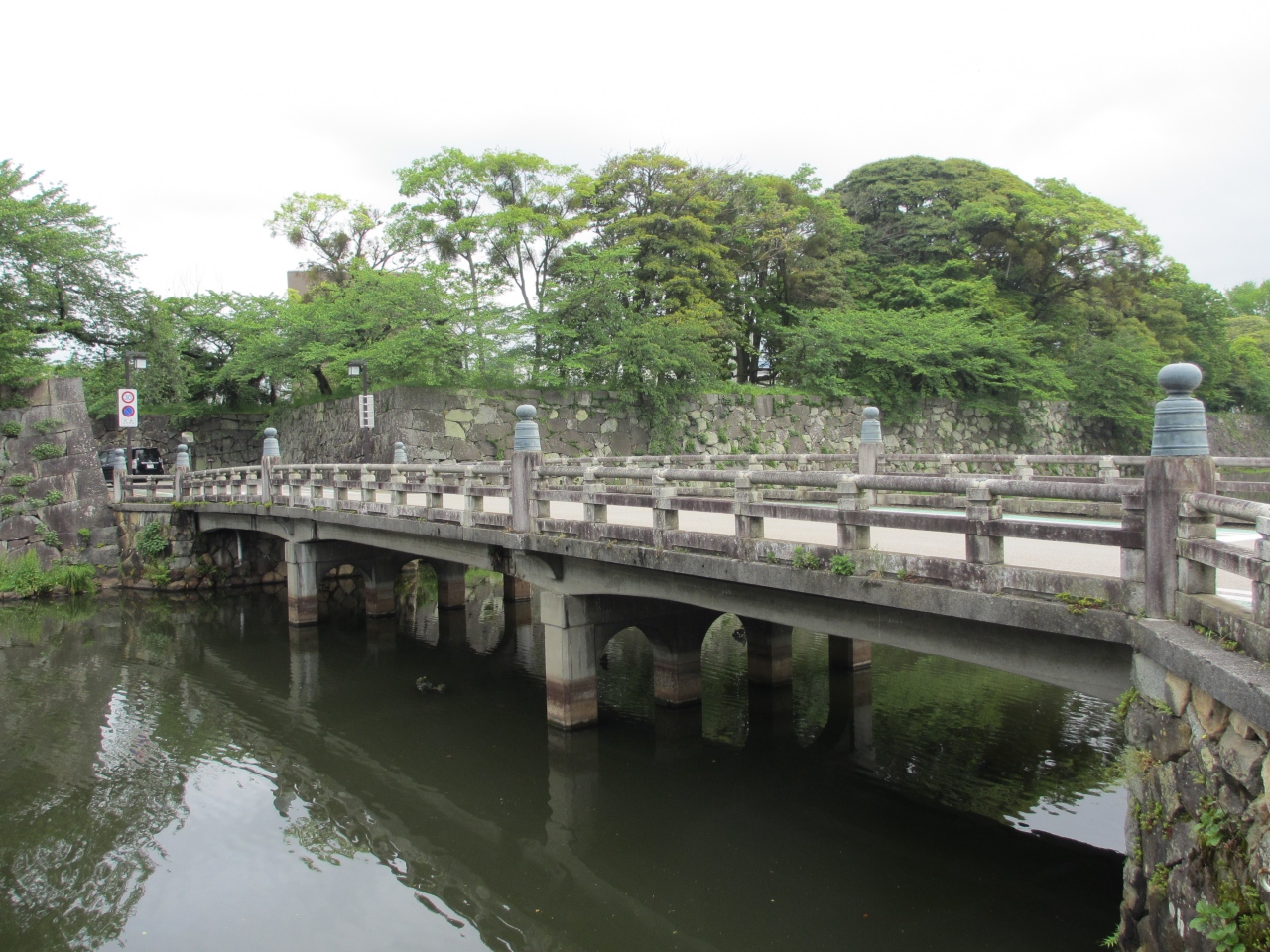 彦根城南側の中堀に架かる橋です。京橋を渡り彦根城跡に入ると、京橋口門跡と長大な石の階段の雁木があります。左手には旧西郷屋敷跡があり、内側に大津地方裁判所彦根支部や大津地方検察庁が、右手には滋賀県立彦根東高校があります。そのため車がよく通ります。京橋を市街地方面に進むと夢京橋キャッスルロードに行きます。観光客だけではなく司法に用事のある人が行き来する橋です。