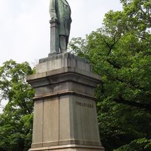 九段坂・お濠沿いの九段坂公園内にあります。上野の西郷隆盛像や皇居前の楠木正成像の制作で知られる高村光雲の監督、本山 白雲が、銅像の原型を作製しました。長州の足軽の家に生まれ、松下村塾に入門し、尊王攘夷運動に参加し、維新後は駐独公使、農商務大輔などを歴任し、幕末・維新の外交に重要な役割を演じる人物でした。場所がらあまり目立ちませんが、靖国通りの歩道橋の上からは像をよく眺めることができます。