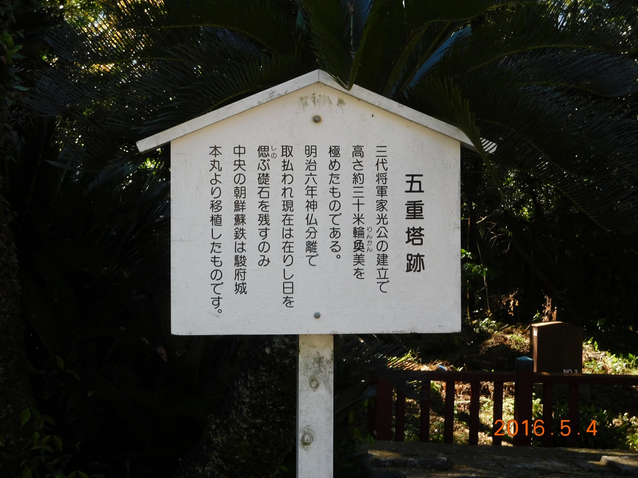 久能山東照宮の楼門をくぐって、左側に五重塔の跡があります。