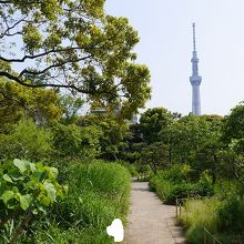 東向島駅から徒歩でアクセス。江戸時代発祥の花園。順路に沿って左右に所狭しと植物が茂っている印象を受けた。途中、スカイツリーが正面に見えるポイントがありこの庭園の特徴だと感じた。ところどころに句碑が配置されていてのんびり眺めながら散策すると小さい施設ながら結構な時間が経過していた。