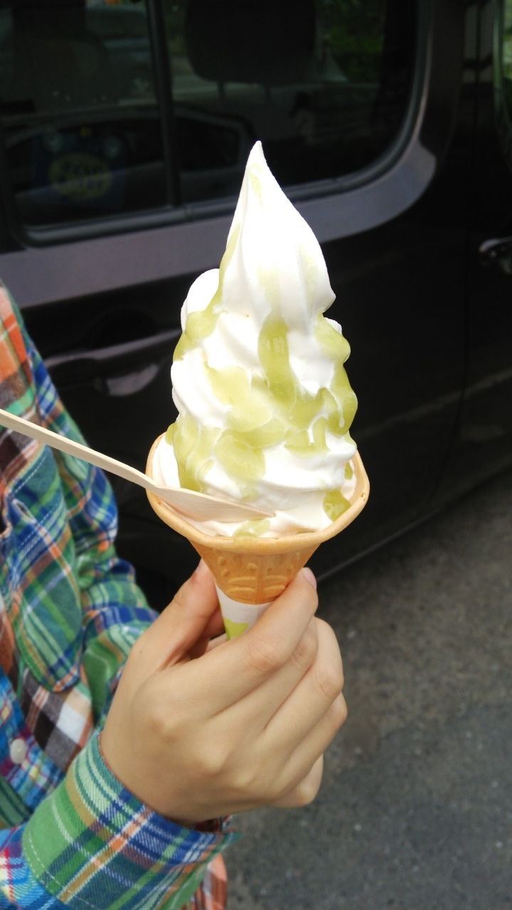 へそまんじゅう購入後、こちらの青梅入りソフトクリームを賞味するのが