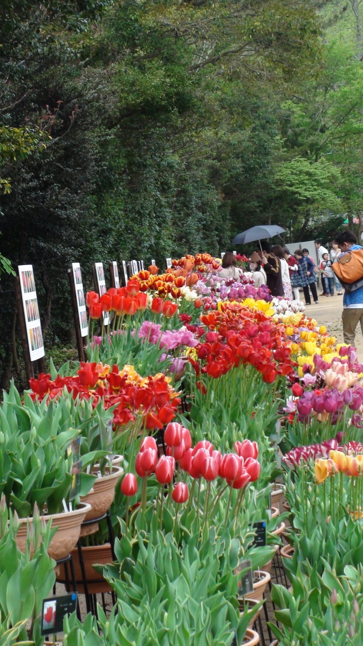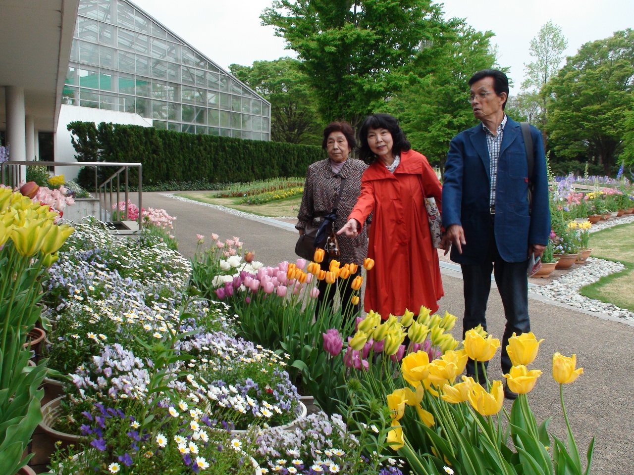 県立フラワーセンターは年間を通じて花爛漫です。特に春は庭園一杯に500品種のチューリップが咲き乱れ家族連れには最高のスポットです。シニアー割引もあり半額で入場できるのでおすすめです、温室内では年中球根ベコニアが咲き乱れ華やかな色彩の花々も見られる。