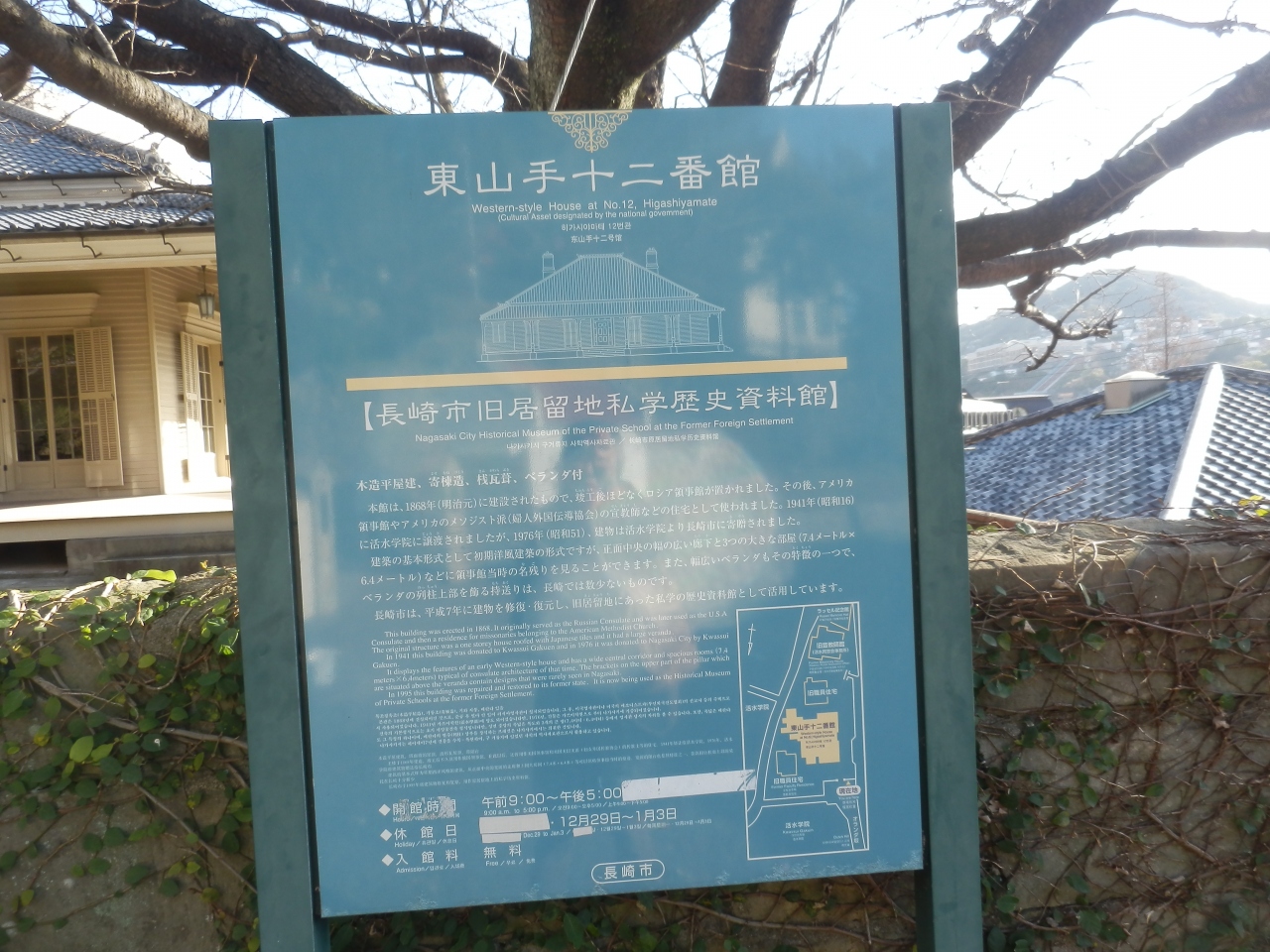 急な坂道オランダ坂を上っていくと、東山手甲十三番館の近くに東山手十二番館があります。ここは明治元年、ロシア領事館として建設されたものです。その後アメリカ領事館、宣教師の住宅として使われました。今は資料館となっているので、当時の歴史等がわかります。