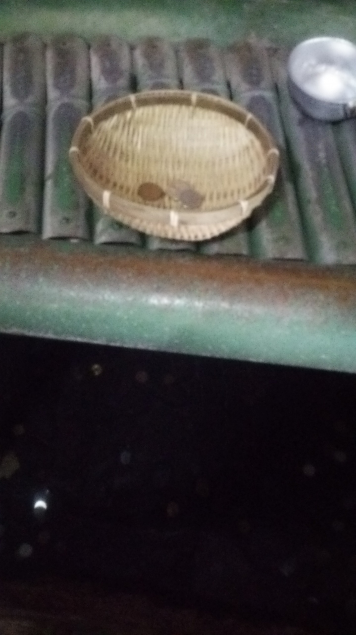 中にはレーンがあり、ざるにお金を入れ、お水で清めることができます。
