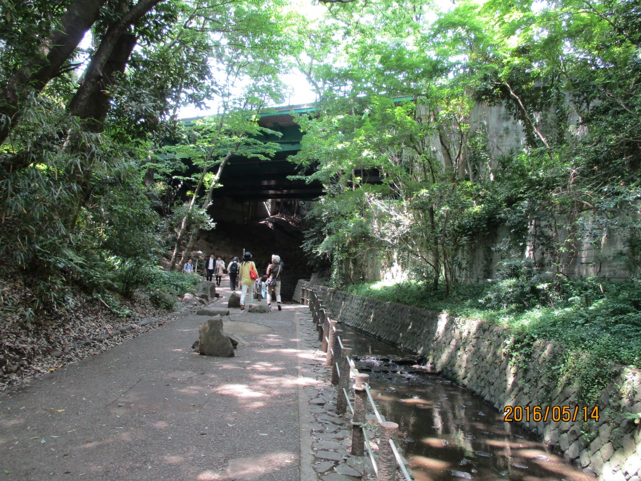 東京急行電鉄大井町線等々力駅から環状8号線方面に向って成城石井の先を右側に曲がると朱色のゴルフ橋脇の階段を下ると樹木が鬱蒼と茂り、川のせせらぎや野鳥の声が聞こえる等々力渓谷に歩いて3分ぐらいで着きます。等々力渓谷は遊歩道が整備されていて東京23区内では唯一の渓谷で美味しい空気を味わえます。