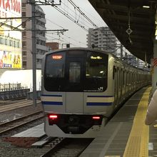 銀色の電車は快速で、横須賀にも直通します。グリーン車もあります。