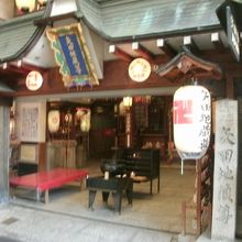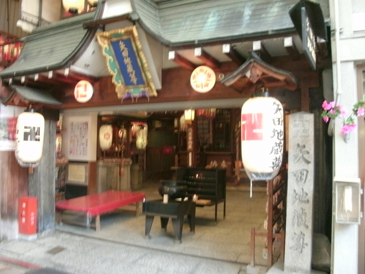 寺町通商店街、三条通と交わる近くのアーケードの中にあるお寺さんです。正式には矢田寺という名前で、“代受苦地蔵”という苦難を身代りになり受けて下さる地蔵菩薩さまをご本尊としてお祀りされています。緑の境内もない小さな規模ですが、たくさんの提灯が掛けられ華やかな雰囲気がするお寺さんです。