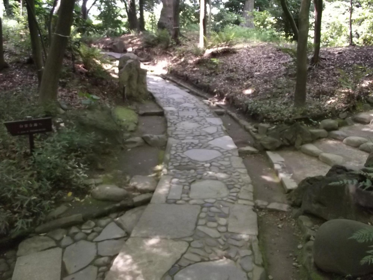 園内回遊路の一部で切石と玉石を組み合わせた石だたみになっています