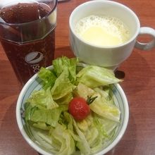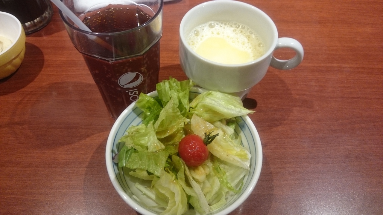 店内は狭く、小さなドリンクコーナーにも列ができます。カウンター席でしたが、背の低い私にとっては椅子やテーブルが高すぎて、隣同士の間隔も狭いのでドリンクバーを貰いに行くのが大変でした。