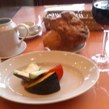 サクラテラスの二階にあります。何時も混んでいて、予約する事をお勧めします。ランチメニューをオーダーしましたが、せっかくなのでデザート・コーヒー付きで2480円のコースにしました。システムがよくわかって無く、焼きたてパンは食べ放題、前菜の野菜プレートはほぼ一皿、メインの前のスパゲティは普通に1人前…肉料理もとても柔らかく大満足しましたが、お店のスタッフの方々には申し訳有りませんでしたが、食べきれずに、少しずつ残してしまいました。…次回も必ず行きたいですし、後で後悔しないよう、量も考えて、予約をしてから出かけたいと思いました。