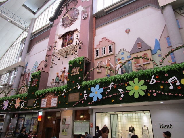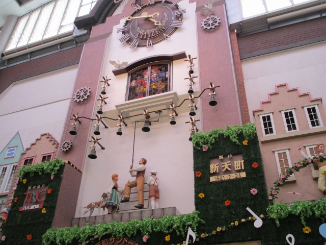 福岡市の老舗が並ぶ新天町にある名物ともいえるからくり時計。