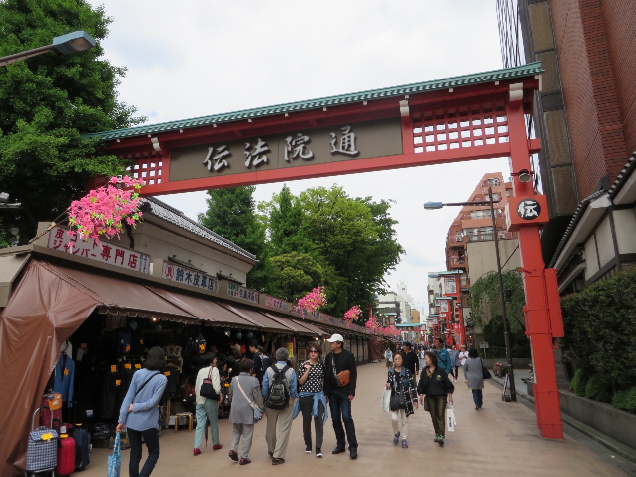 国際通りの方から、仲見世通りへ直角に繋がっている通りが伝法院通りです。仲見世通りがいつも人であふれかえっているのに比べて、こちらの通りは道幅も少し広く、人にぶつからずに歩くことができます。浅草ならではのおいしい食べ物屋さんが多く、食べ歩きをするならこちらの方がお薦めです。