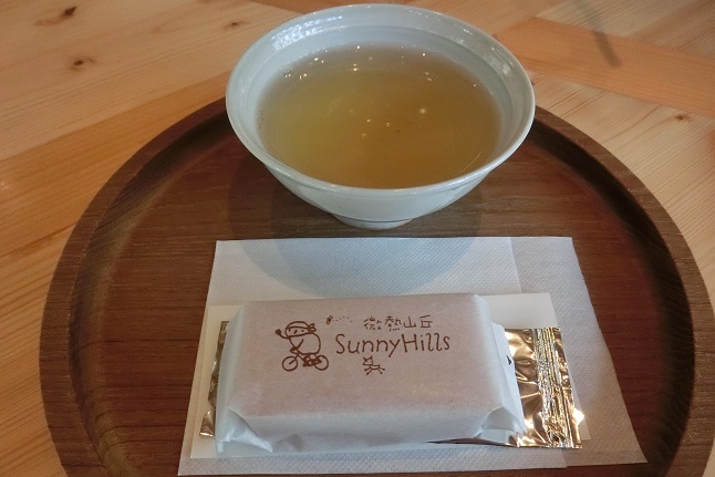 うんで、『当店ではお買い物だけではなく、パイナップルケーキとお茶を