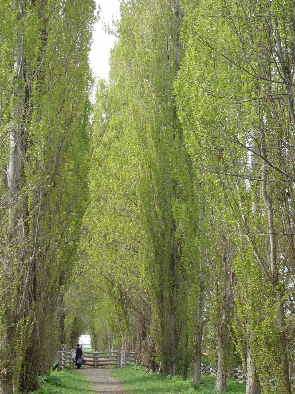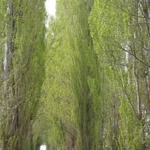 ポプラは落葉樹です。冬には葉がついていません。春に新緑になります。夏は葉がもっとも多い。晩秋には落葉します。四季それぞれ姿がちがいます。そんなポプラ並木は並木全体として生きているようです。季節と人生,ともに感じられるところです。