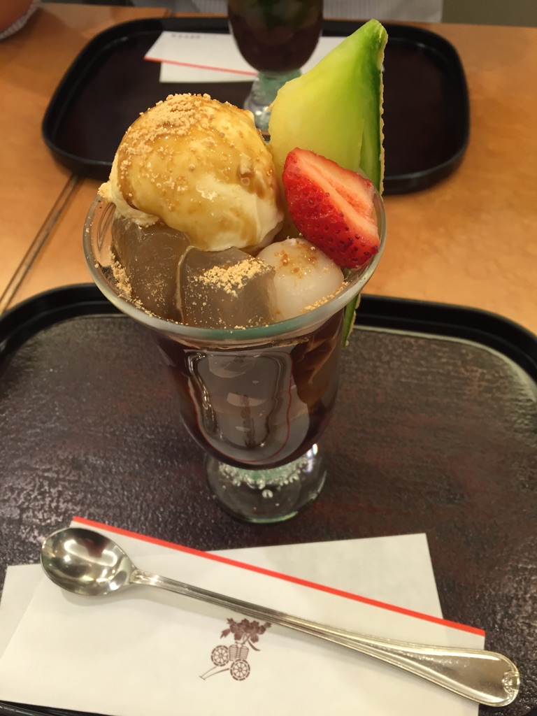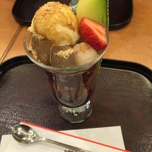 かき氷やパフェ類、ぜんざいに和菓子と抹茶のセットなどもありおいしかったです。テーブルは狭いので長居はできない感じ。