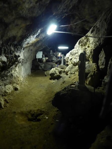 洞窟入り口の案内板には、「怖がらずに奥にお進みください。何かがあなたをお待ちしております。」と書かれていました。