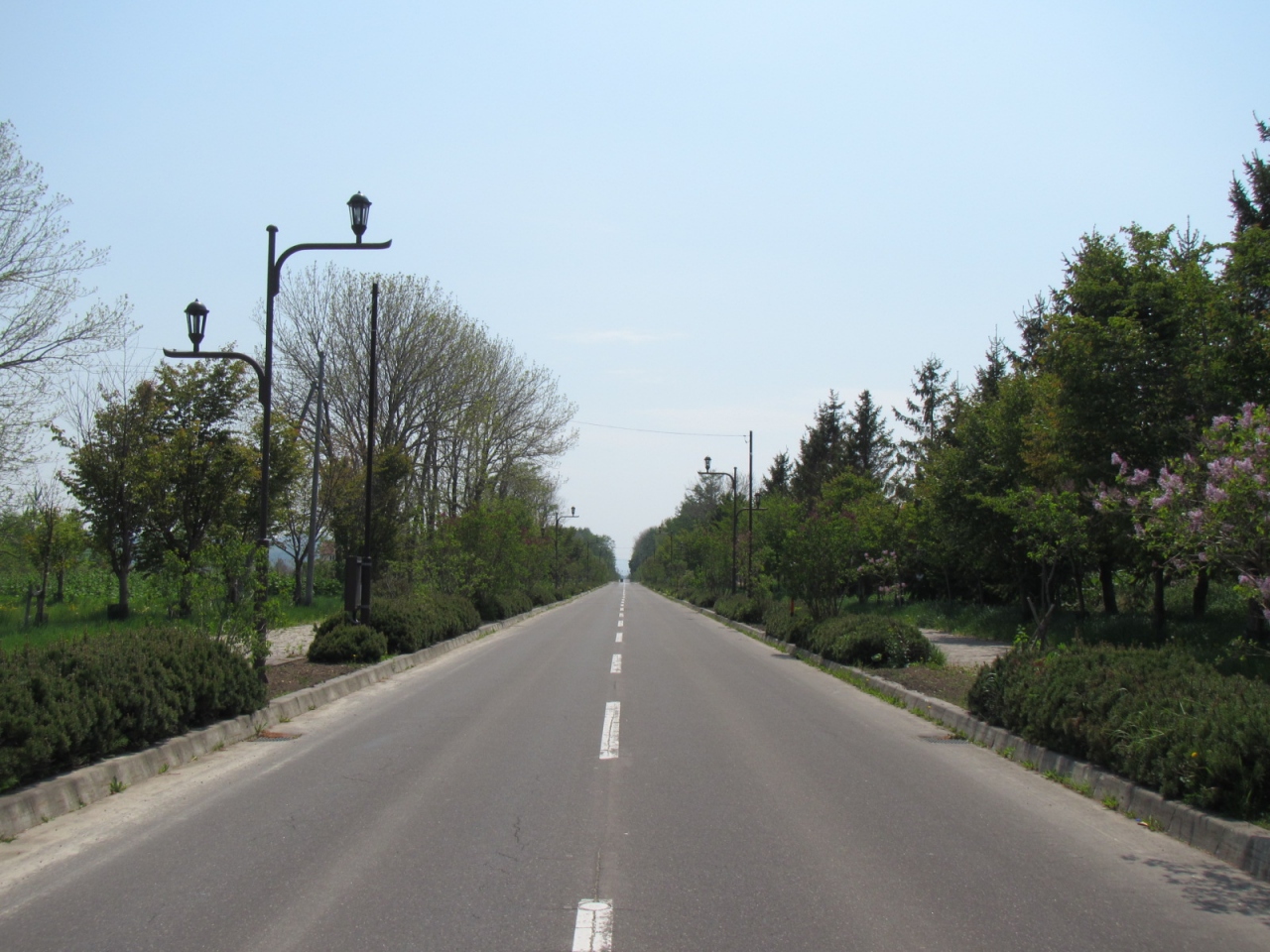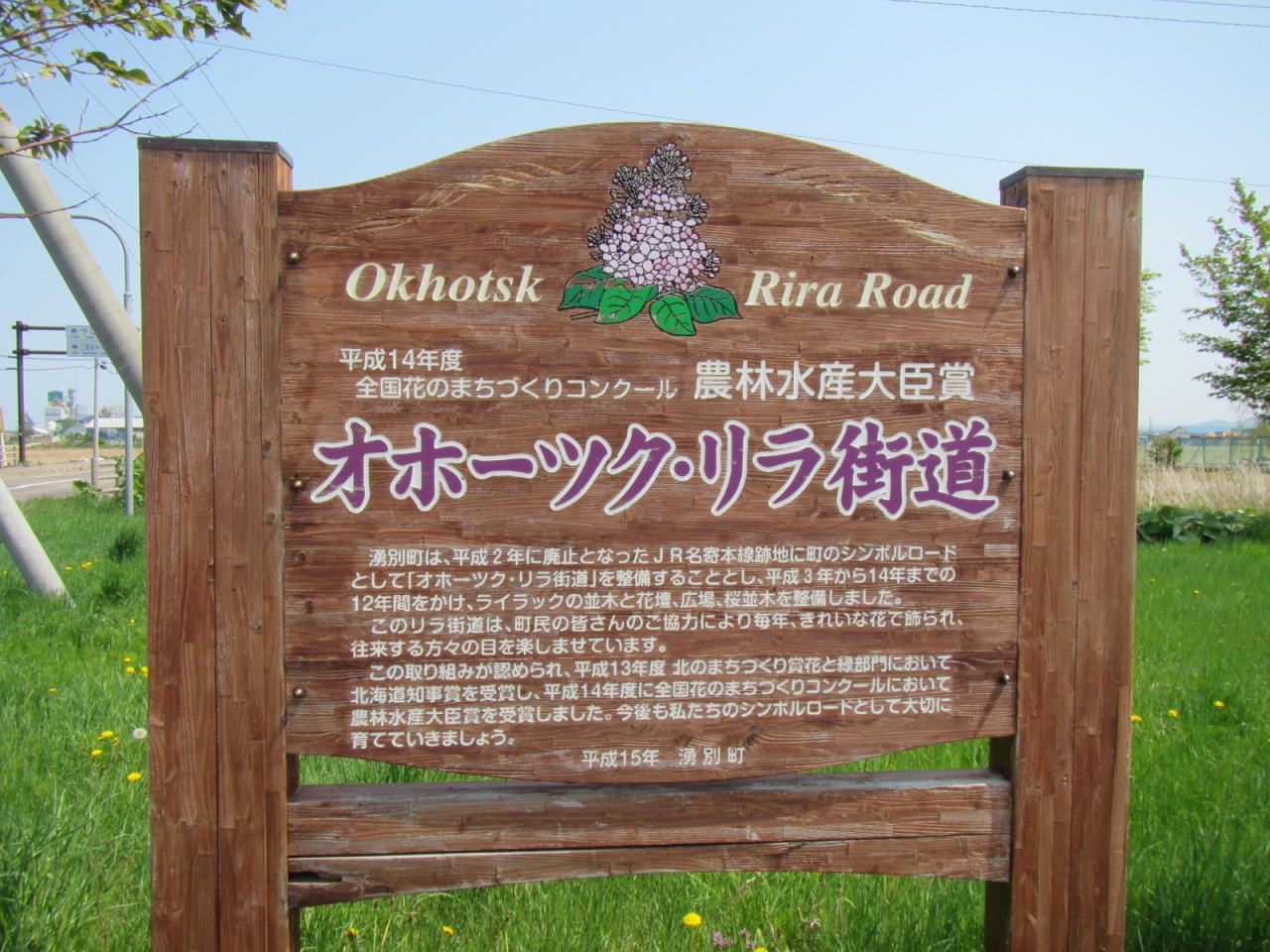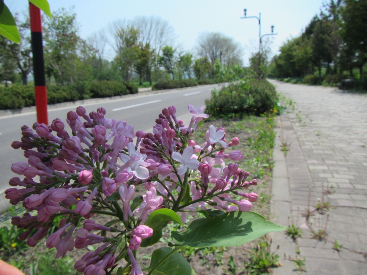 旧名寄本線、湧別支線の跡に整備された道路で、ライラック(リラ)や桜などの街路樹が植えられていました。